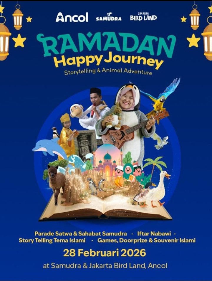 Melalui program ini, pengunjung dapat menikmati Festival Keajaiban Ramadhan suasana sore hingga malam hari di kawasan Danau Monumen Ancol dengan berbagai acara seperti Kajian Tematik Ramadhan, Ramadhan Kuliner, Nada Ramadhan hingga Kompetisi Hadroh & Marawis. - Program Ramadhan Happy Journey di Samudra Ancol & Jakarta Bird Land – Kegiatan Edukatif Islami yang penuh Makna Samudra Ancol dan Jakarta Bird Land menghadirkan program spesial bertajuk “Ramadhan Happy Journey: Storytelling & Animal Adventure” yang akan diselenggarakan pada 28 Februari 2026.