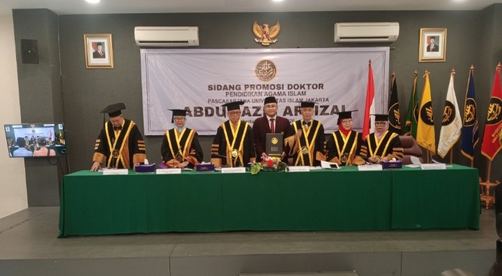 Dibulan Puasa Ramadhan sebagai Bulan Penuh Berkah, Rahmad dan Ampunan, dimana setiap amal kebaikan dilipatgandakan, telah menjadi berkah buat Mahasiswa Program Pascasarjana (Doktor) Pendidikan Agama Islam Universitas Islam Jakarta Abdul Azis Afrizal, dimapa bertempat di Aula Bab Al Rasyidi, Kampus Universitas Islam Jakarta (UID) pada Senin 23 Februari 2026, Promovendus Abdul Azis Afrizal berhasil mempertahankan desertasinya didepan Dewan Penguji Program Doktor hingga meraih kesuksesan dengan dinyatakan lulus oleh Ketua Tim Penguji, Prof. Dr. Ir. Raihan, M.Si (Rektor Universitas Islam Jakarta), dan berhak menyandang Gelar Doktor Pendidikan Agama Islam, serta menjadi Lulusan yang ke 82.