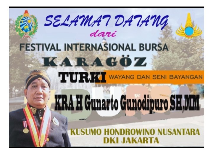 KRA Ki. H. Gunarto Gunotalijendro SH.MM mengaku berterimakasih kepada Keluarga Besar Kusumo Hondrowino Nusantara yang hari ini menyambut kedatangan kami dari Sanggar Sari Laras dan UNIMA Indonesia. sebagai anggota KHN sudah melaksanakan tugas dan Sukses dalam menyebarluaskan Kesenian Wayang Kulit ke Mancanegara, khususnya di Negara Turki, dan kami diberi kesempatan tampil dua kali, dalam iven internasional tersebut, yaitu tanggal 21 dan 22 November 2025 bahkan apresiasi pengunjung sangat besar, dan kita juga sudah diagendakan untuk hadir kembali pada iven lain di Cekoslavia.